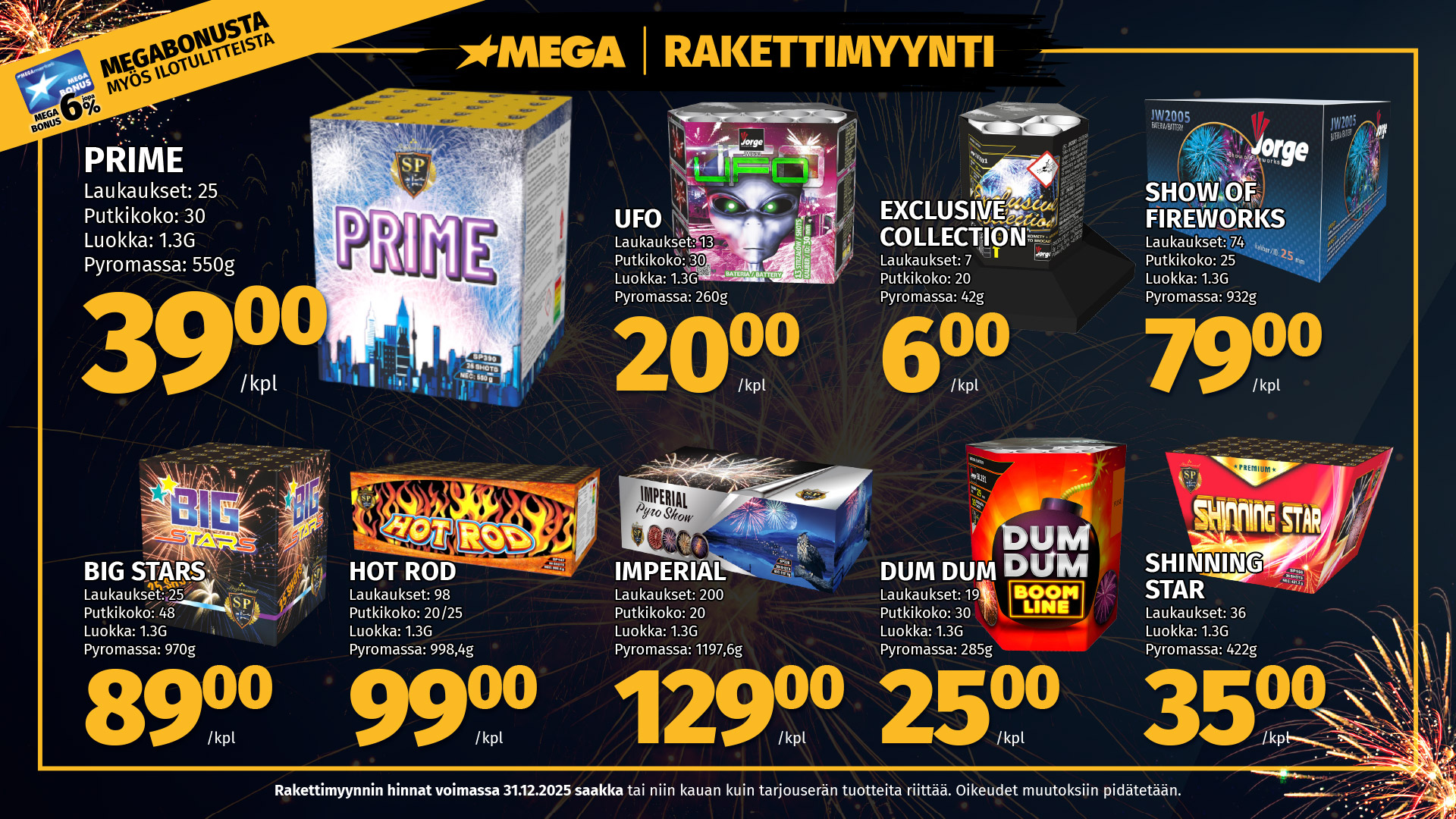 Tilaamalla Mega-tarjoukset suoraan sähköpostiisi saat ne ensimmäisenä ja olet myös automaattisesti mukana vain Mega-tarjousten tilaajille kohdistuvissa arvonnoissa.